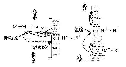 零件或構件在應力和腐蝕介質作用下,表面的氧化膜被腐蝕而受到破壞,破壞的表面和未破壞的表面分別形成陽極和陰極,陽極處的金屬成為離子而被溶解,產(chǎn)生電流流向陰極。